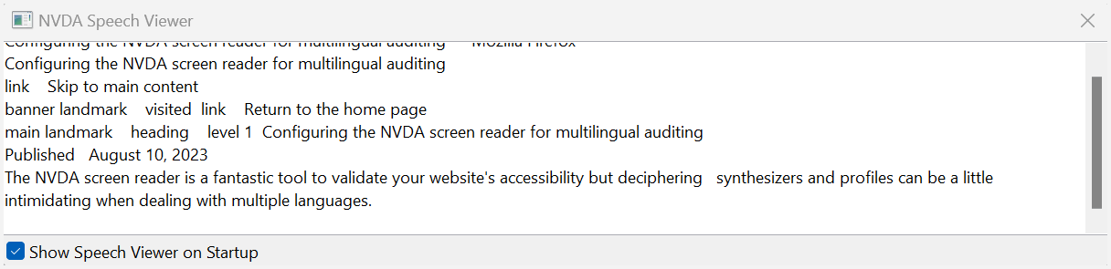 For casual users, the speech viewer is an invaluable tool that's hard to overlook. It provides a real-time text display of NVDA's spoken output, allowing you to easily review what's being read aloud. This is especially useful for debugging as you can quickly copy text directly from the viewer.