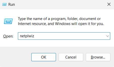 Open the Run dialog by pressing Ctrl + R and enter control userpasswords2 to open the User Accounts panel.